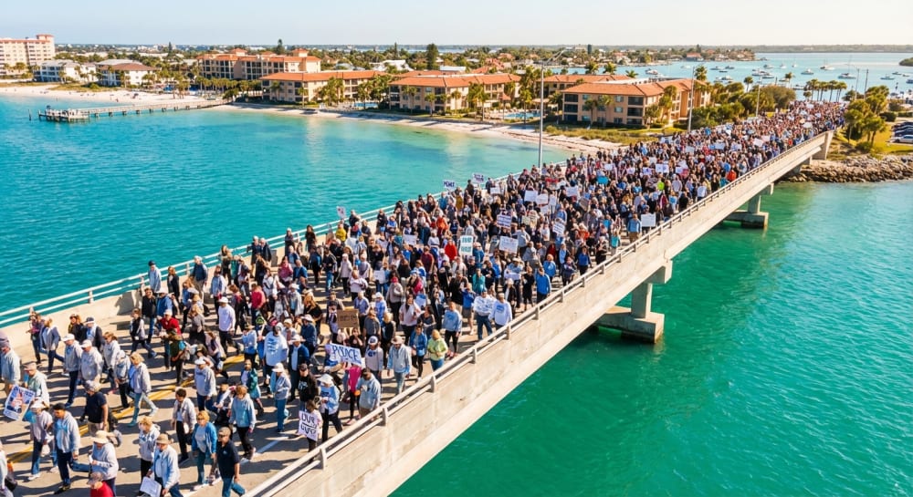In Vero Beach, the demonstration centered on the Merrill P. Barber Bridge, where participants gathered to voice their dissent. The event was not isolated to Indian River County; neighbors to the south in Stuart also participated, with crowds assembling on the Roosevelt Bridge.